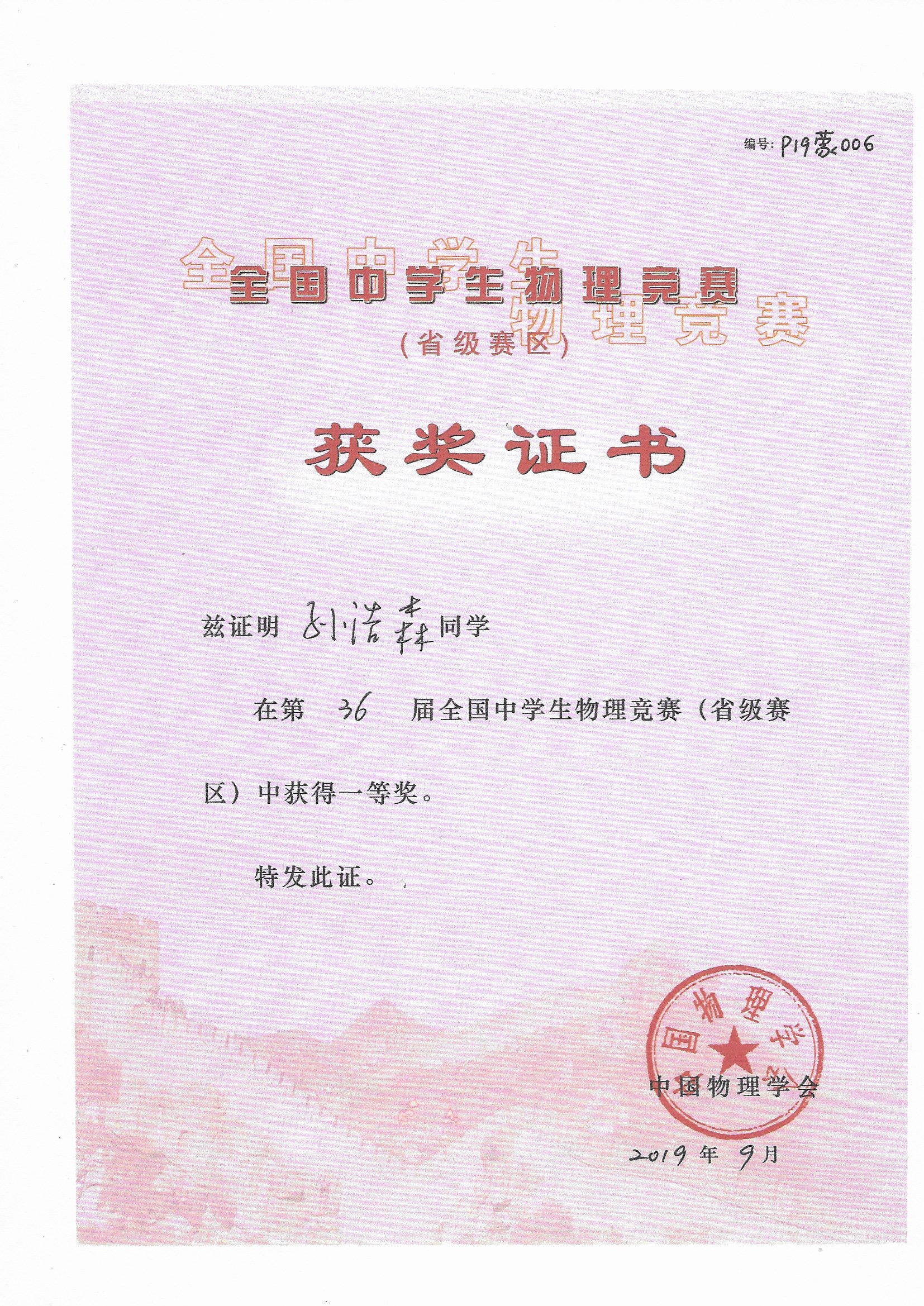 - Bronze Medal and the First Prize in the 36th Chinese Physics Olympiad (CPHO), Top 0.1%